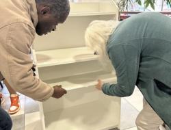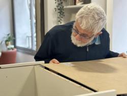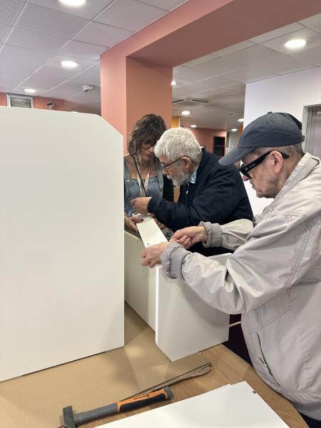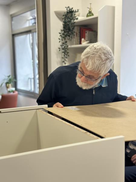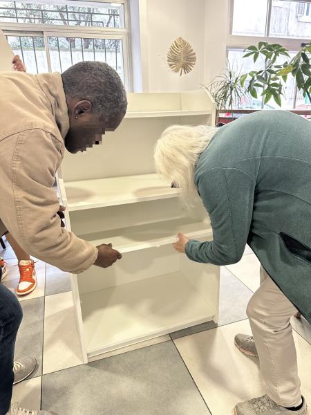 De nombreux résidents, majoritairement des hommes mais aussi quelques femmes, se sont portés volontaires pour participer au montage de deux meubles destinés à améliorer le quotidien de tous.