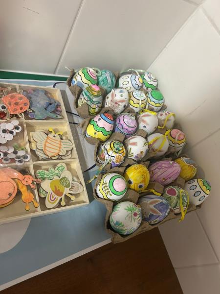 Pour l’occasion, les résidents ont participé à la décoration d’œufs ainsi que d’autres supports en lien avec cette thématique printanière. Peinture, couleurs et imagination étaient au rendez-vous, et chacun a pu contribuer à sa manière à la réalisation des décorations.