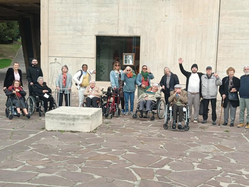 La suite de notre sortie commencée au restaurant nous a conduits à la Cité Radieuse, chef-d’œuvre de l’architecte Le Corbusier, pour une visite culturelle qui a enchanté nos 11 résidents.