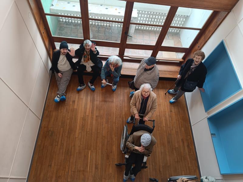 La visite s’est poursuivie sur le toit-terrasse, espace emblématique de la Cité Radieuse. Nos résidents ont pu admirer le panorama sur Marseille et découvrir l’école maternelle, la piste de course et le solarium, des installations qui montrent l’attention portée par Le Corbusier au bien-être et aux échanges sociaux. Ce moment a suscité des échanges animés et des souvenirs de jeunesse pour certains, rendant la visite aussi enrichissante sur le plan émotionnel que culturel.