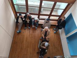 Nous avons ensuite arpenté les anciennes « rues » du bâtiment, conduisant aux anciens commerces et services : bureau de poste, épicerie, restaurant, laverie… Ces espaces témoignent de la volonté de Le Corbusier de créer un lieu de vie complet et autonome. Certains résidents, qui avaient suivi la construction de la Cité Radieuse dans les années 1950, ont partagé avec émotion leurs souvenirs et anecdotes, ravivant leur mémoire et celle de tous les participants.