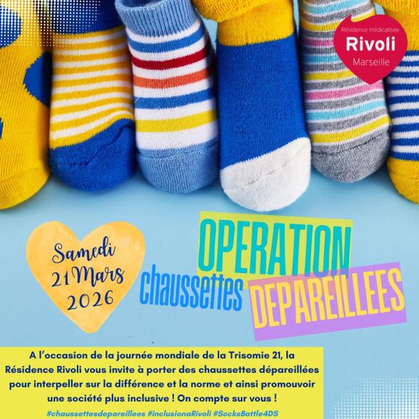 La Résidence Rivoli soutient pleinement cet élan de solidarité et souhaite s’y associer en invitant résidents, familles et professionnels à participer. Nous proposons à chacun de jouer le jeu en portant, ce jour-là, des chaussettes dépareillées.