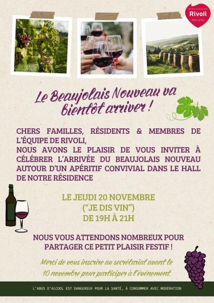 Parce que chaque occasion est belle pour se retrouver, partageons un verre, un sourire et un moment de convivialité autour du Beaujolais Nouveau.