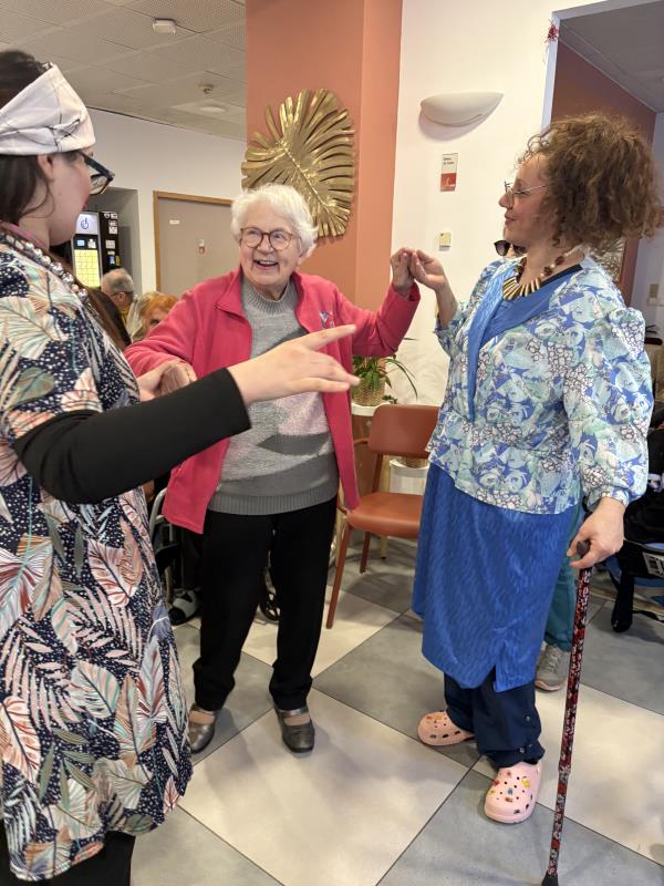 Pour l’occasion, les couleurs et les sourires étaient au rendez-vous. Certains résidents ont porté des accessoires festifs – masques, chapeaux et colliers – apportant une touche de fantaisie à cette belle après-midi. La salle était décorée aux couleurs de la fête, créant une atmosphère joyeuse et animée.