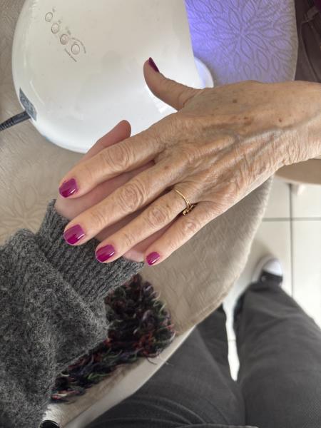 Animée par l’envie de perfectionner sa pratique tout en donnant du sens à son apprentissage, Ambre a proposé bénévolement d’intervenir dans notre établissement. Au programme : manucure soignée et pose de vernis semi-permanent pour le plus grand plaisir de dames toujours coquettes et ravies de ce moment privilégié.