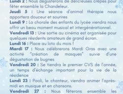 Le planning des événements du mois de février est désormais disponible.